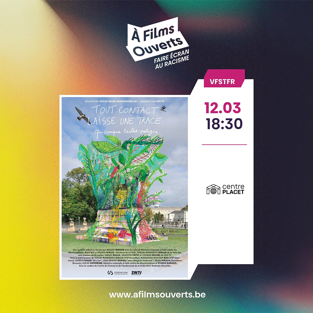 Dans le cadre de la balade décoloniale de Louvain-la-Neuve, la projection de « Tout contact laisse une trace » (Nizar Saleh & Mohammed Ali - Documentaire (Belgique) - 2024 · 1h04 · VF) sera suivie d’un atelier d’écriture participatif avec Milady Renoir, pour réfléchir ensemble à la décolonisation de l’espace public.
