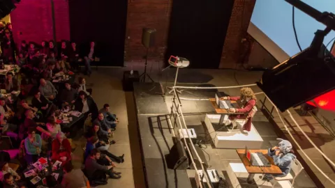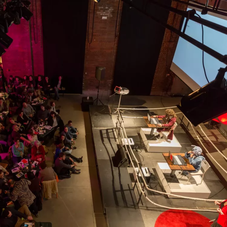 Iels ont alors trois minutes par combat pour terrasser leur adversaire en improvisant une histoire sur des thèmes imposés ! Devant eux·elles, un public enthousiaste mais concentré assiste à l’acte créatif en direct sur les écrans géants. L’interaction est totale. Manos ariba, les lutteur·euses lâchent le clavier, on imprime les histoires.