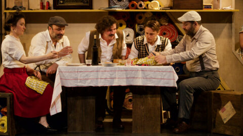 Du rire aux larmes, de l’amour retenu à la haine contenue, de la cruauté brute à l’humanité tendre, tout dans cette pièce est parfaitement maîtrisé pour dépeindre les travers maladroits d’une famille, d’amis et d’amoureux. Ce joyeux mélange prend place dans une ambiance rendue tendue par l’ombre de l’aigle allemand qui plane au-dessus de cette cave où l’on fait, cette nuit, l’inventaire des tissus.